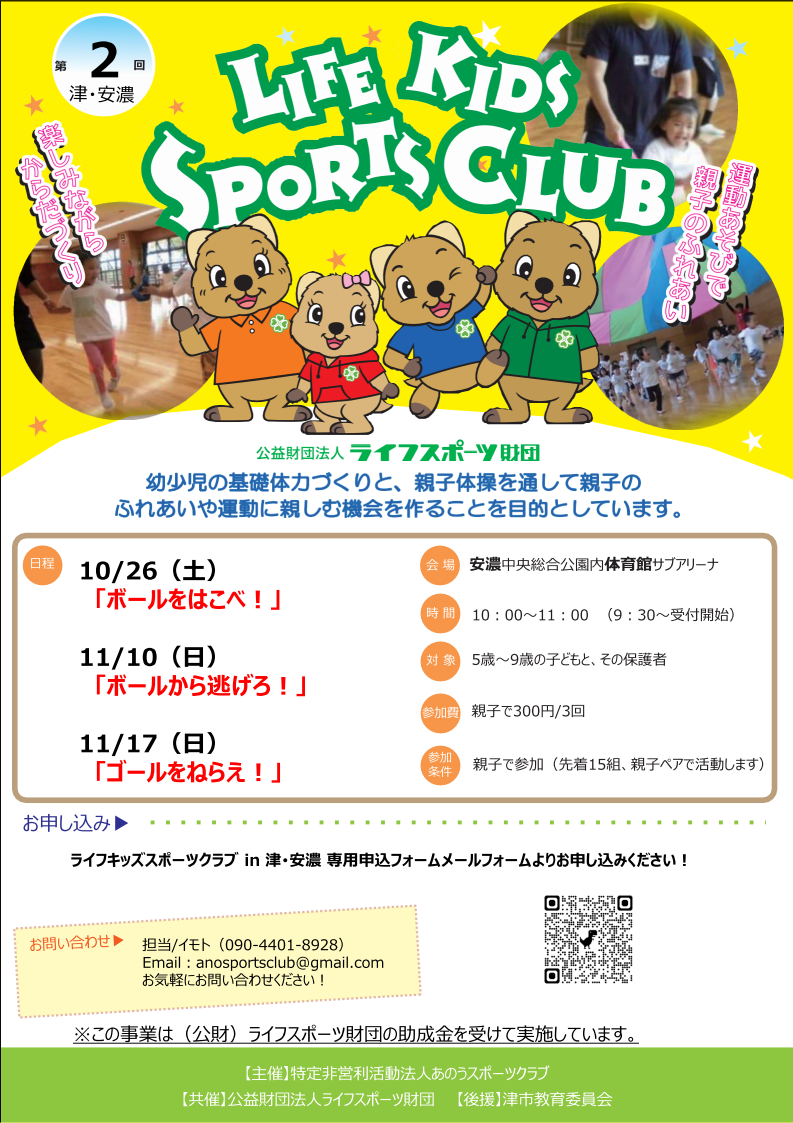 ライフキッズスポーツクラブin津・安濃 開催のお知らせ